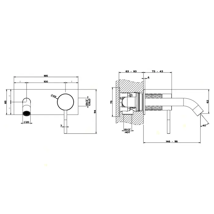 Gessi 316 Intreccio Встраиваемый смеситель для раковины, цвет: steel brushed 54188#239