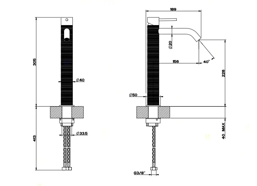 Gessi 316 Trame Смеситель для раковины высокий без дон. клап. однорыч., цвет: black metal brushed 54306#707