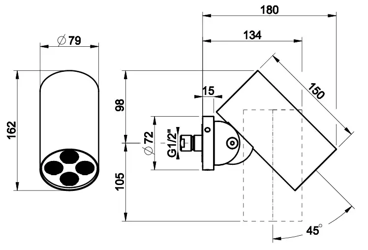 Gessi 316 Верхний душ d7,9 см, 1 вид струи, кронштейн настенный, цвет: steel brushed 57287#239