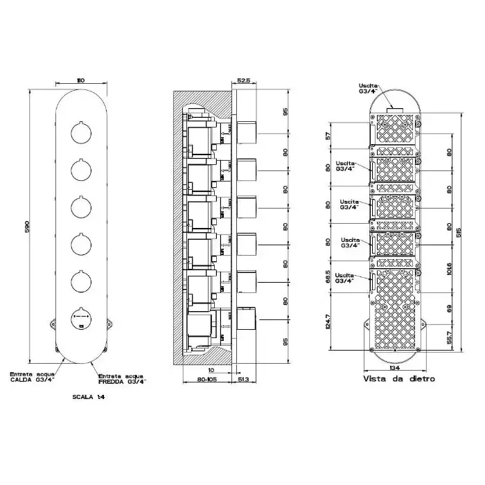 Gessi Anello Термостат для душа встраиваемый на 5 потребителей, внешняя часть, цвет: chrome 43070#031