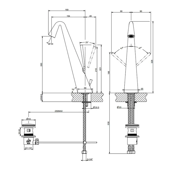 Gessi Cono Смеситель для раковины без донного клапана однорычажный, цвет: matte black 45001#299