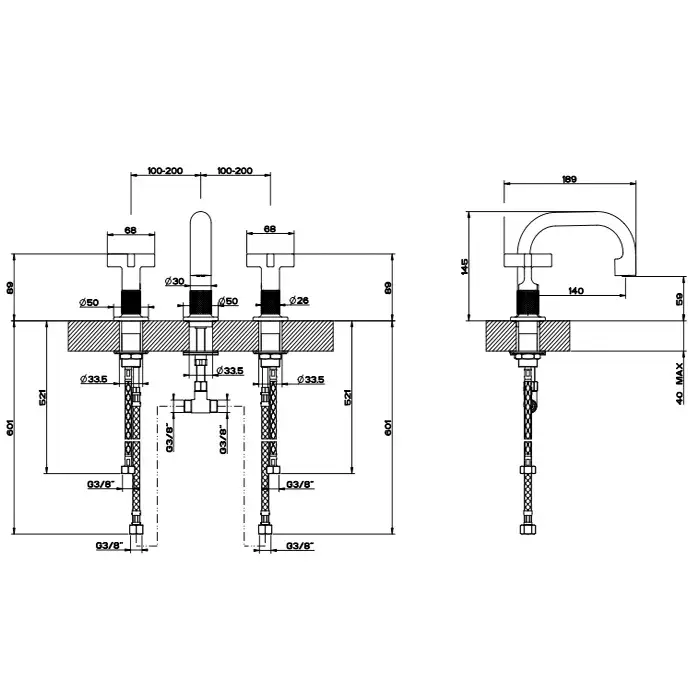 Gessi Inciso Смеситель для раковины на 3 отверстия, излив 14 cм, цвет: black metal brushed PVD 58112#707