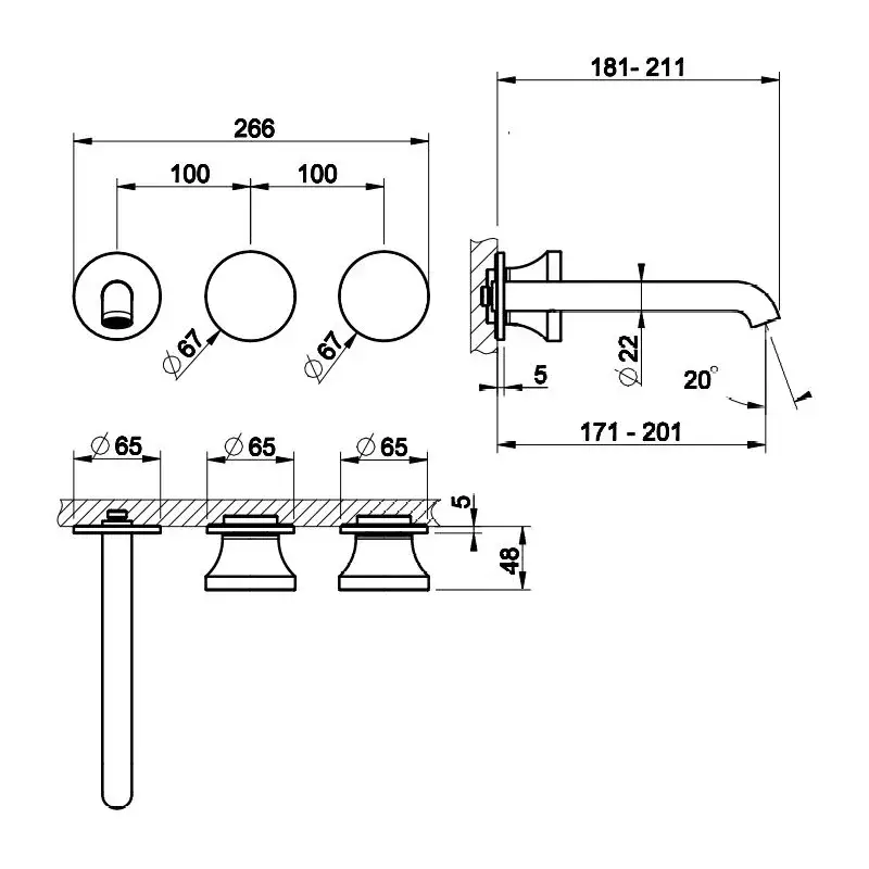 Gessi Origini Смеситель для раковины встраиваемый, без д/к, излив 20 см, внешняя часть, цвет: chrome 66090#031