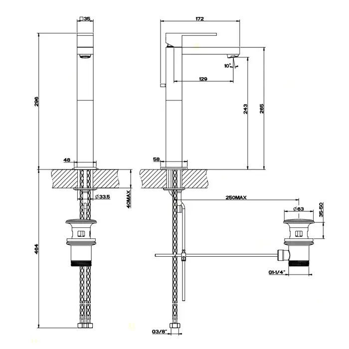 Gessi Rettangolo Смеситель для раковины с высоким изливом 21,3 cм, цвет: black metal PVD 11924#706