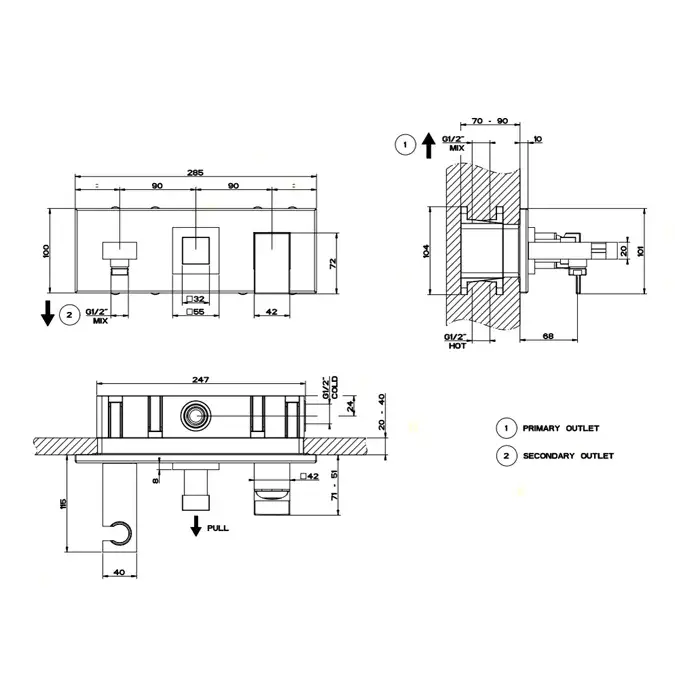 Gessi Rettangolo Встраиваемый термостат, с 3 независимыми выходами, цвет: black metal PVD 43026#706