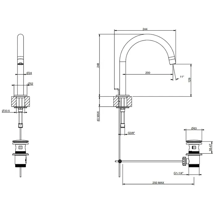 Gessi Via Tortona Излив отдельностоящий для умывальника с д/к, высота 12,9 см, цвет: matte black 18621#299