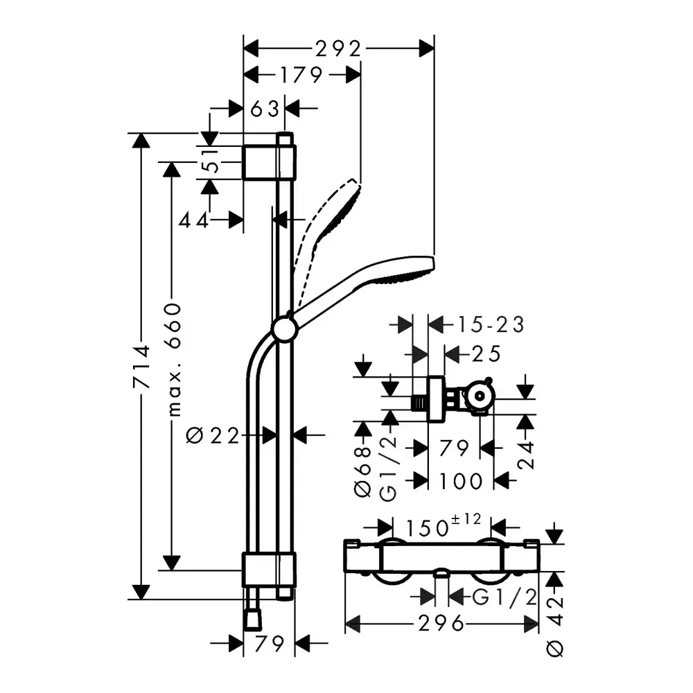 Hansgrohe Croma Select S Душевой комплект: термостат, лейка 3 режима, штанга, цвет: белый/хром 27833400
