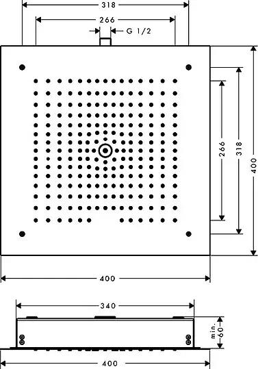 Hansgrohe Raindance E Верхний душ встраиваемый в потолок 40 см, 1 вид струи, цвет: хром 26252000