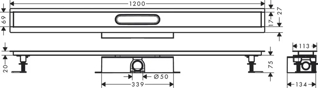 Hansgrohe RainDrain Трап для душа 120 см, с регулировкой по высоте, цвет: сталь 56218800
