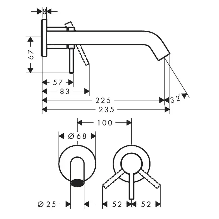 Hansgrohe Tecturis S Смеситель для раковины встраиваемый, внешняя часть, излив 22,5 см, цвет: хром 73351000