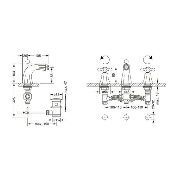 Jorger Ramses Albano Смеситель для биде, на 3 отверстия, настенный, цвет: хром 611.30.100.000