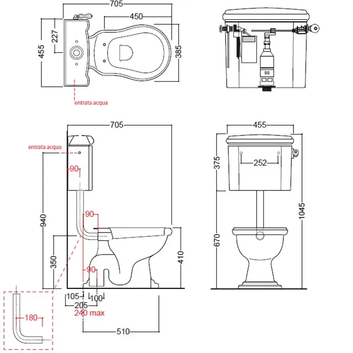 Kerasan Retro Бачок подвесной для высокой трубы, без трубы и механизма, цвет: Nero lucido 108004 nero