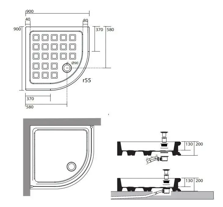 Kerasan Retro Поддон угловой для душа керамический 90x90x20h см, без сифона, слив 9 см, цвет: Bianco 133901