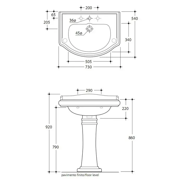 Kerasan Retro Раковина подвесная 100x54,5, с 3 отвер. под смеситель и переливом, цвет: Neco lucido 105004 nero*3