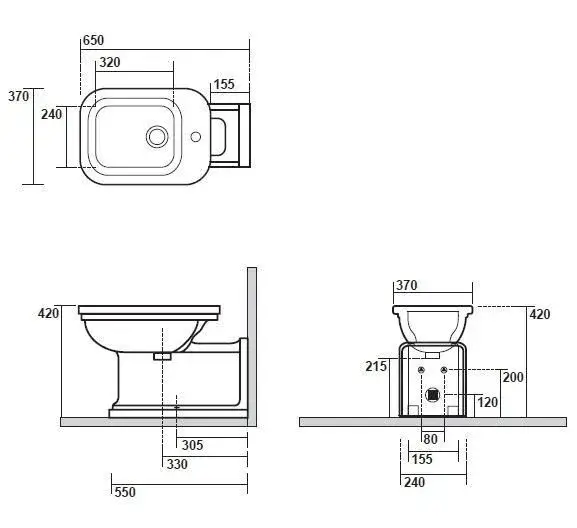 Kerasan Waldorf Биде напольное 65x37 см, с 1 отвер. под смес., перел. и наклад., цвет: Bianco/Cromo 4120K1bi/cr*1
