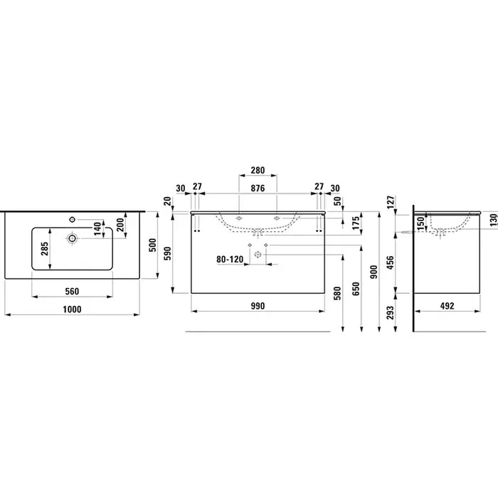 Laufen Pro S Раковина, база 100х50хh61 см, цвет: белый глянцевый 8.6496.2.261.104.1