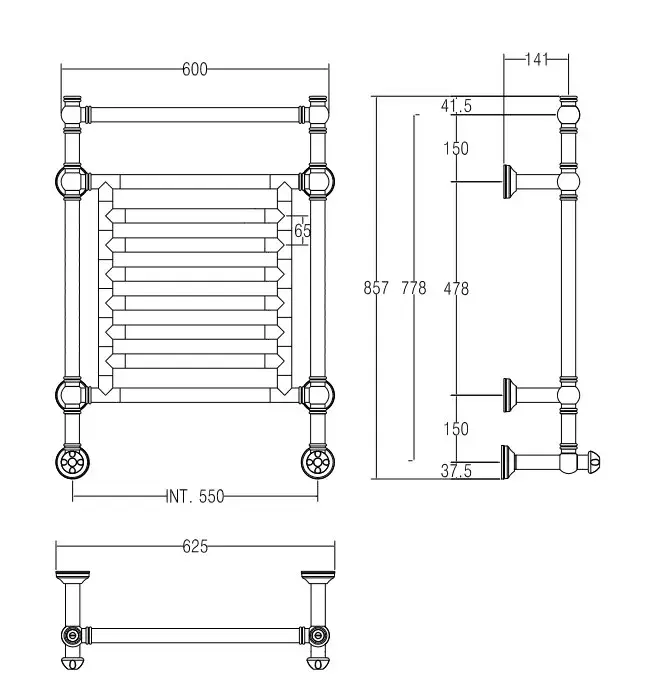 Margaroli Armonia 9-204 Полотенцесушитель водяной с полкой 62,5х97h (int 55) нижнее, цвет: chrome 9204CRN