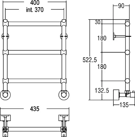 Margaroli Sole 440 Полотенцесушитель водяной для ГВС 43,5х52h (int 37) нижнее, цвет: chrome 4403704CRN