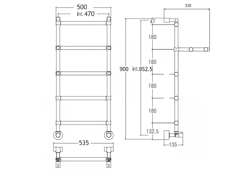 Margaroli Sole 514/14 Полотенцесушитель электрический 53х130h (int 47), выкл. справа, цвет: chrome 5144714CRNB