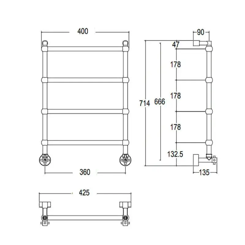 Margaroli Sole 442/TS Полотенцесушитель водяной для ГВС 42,5х71h (int 36), нижнее, цвет: chrome 442TS3604CR