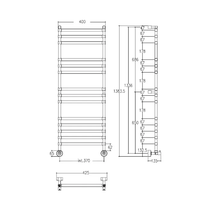 Margaroli Sole 514/14 Полотенцесушитель электрический 53х130h (int 47), выкл. справа, цвет: chrome 5144714CRNB