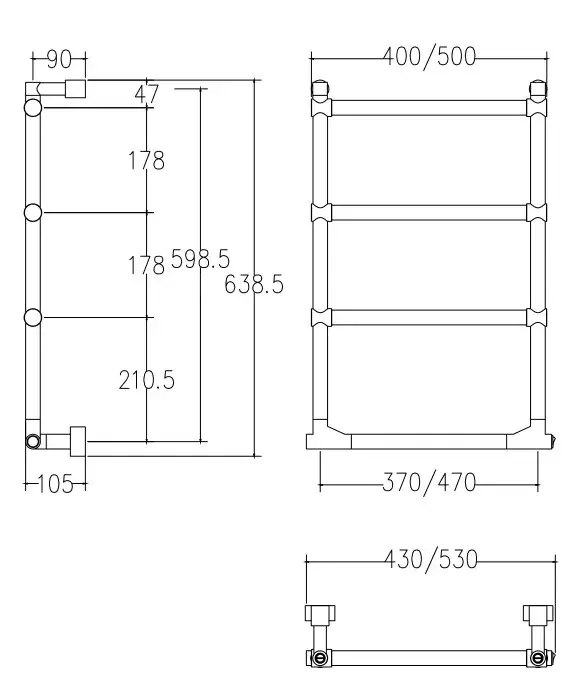Margaroli Sole 464/TQ/8 Полотенцесушитель водяной для ГВС 51х75h (int 46), нижнее, цвет: matt black 464TQ468MB