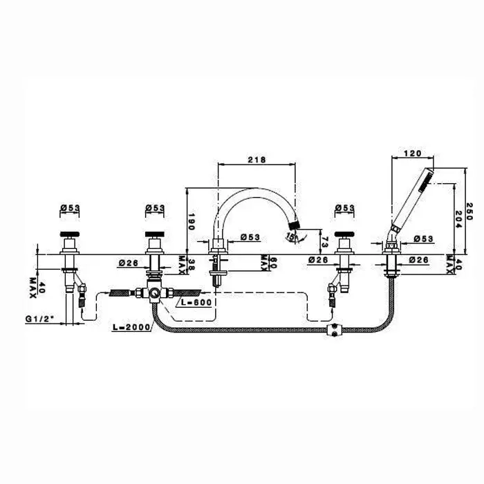 Nicolazzi Arena Смеситель на борт ванны на 5 отверстий, излив 25 см, цвет: хром 3324CR44