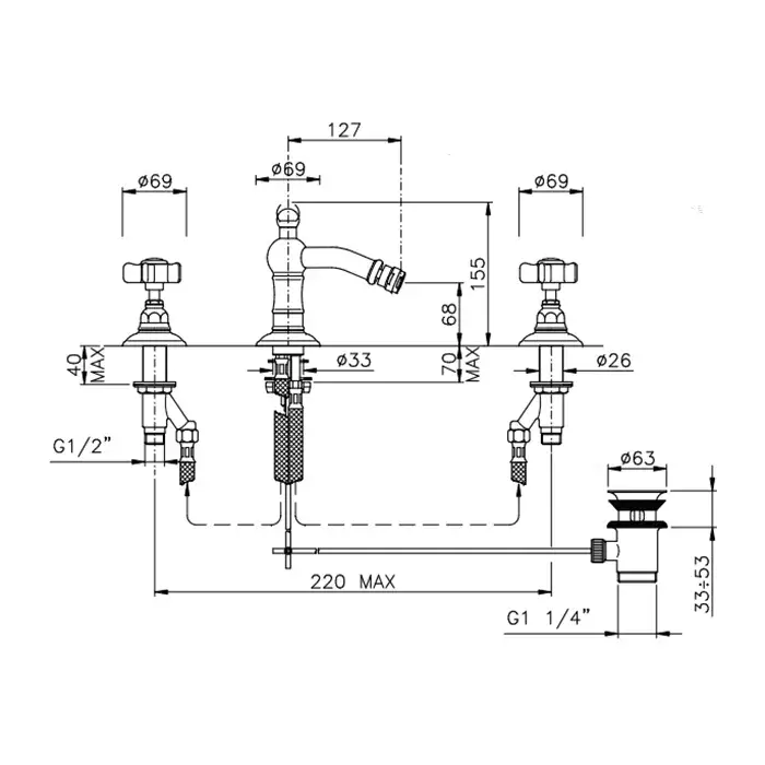 Nicolazzi Dames Anglaises Смеситель для биде, на 3 отв., с донным клапаном, цвет: бронза 1415BZ18