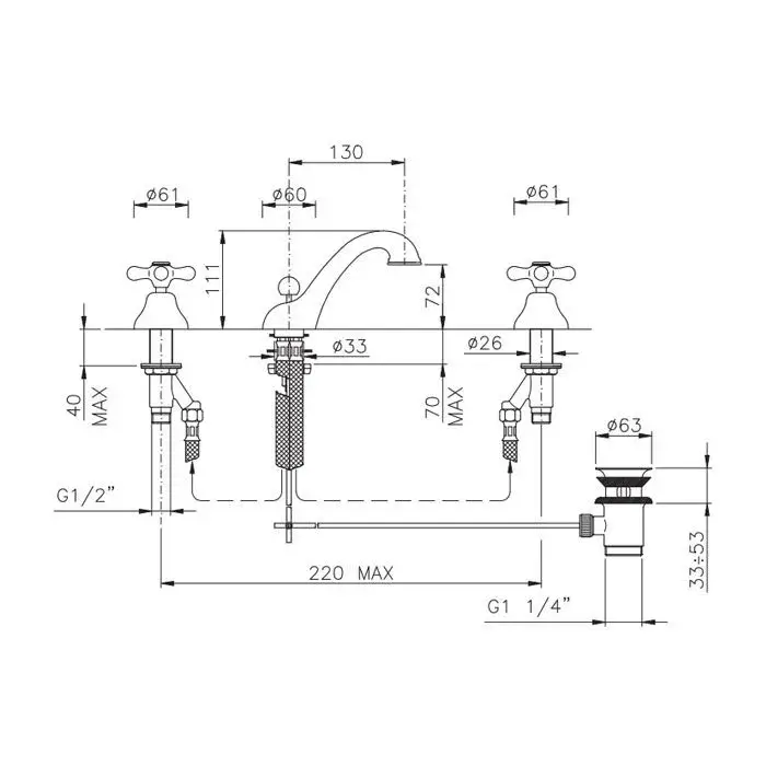 Nicolazzi Nuova Brenta Смеситель для раковины с 2мя ручками, пов. излив 13,2 см, цвет хром 2536CR