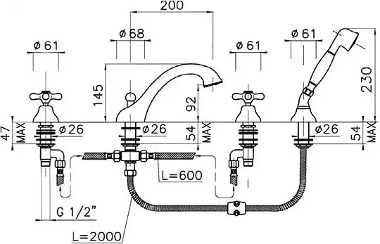 Nicolazzi Nuova Brenta Смеситель для ванны, с 2мя ручками, душ. лейка, цвет: тёмная бронза 2501DB