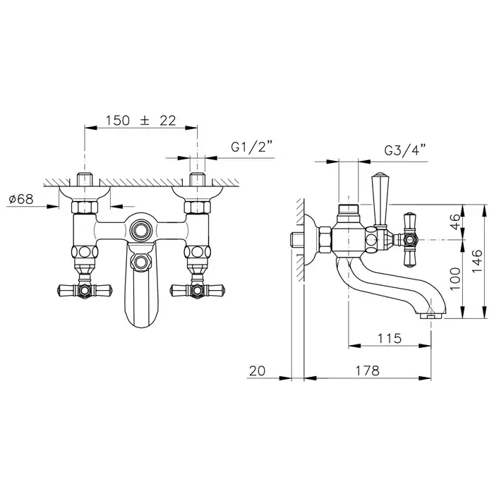 Nicolazzi Teide Смеситель для ванны для душевой стойки настенный, цвет хром 1900CR05