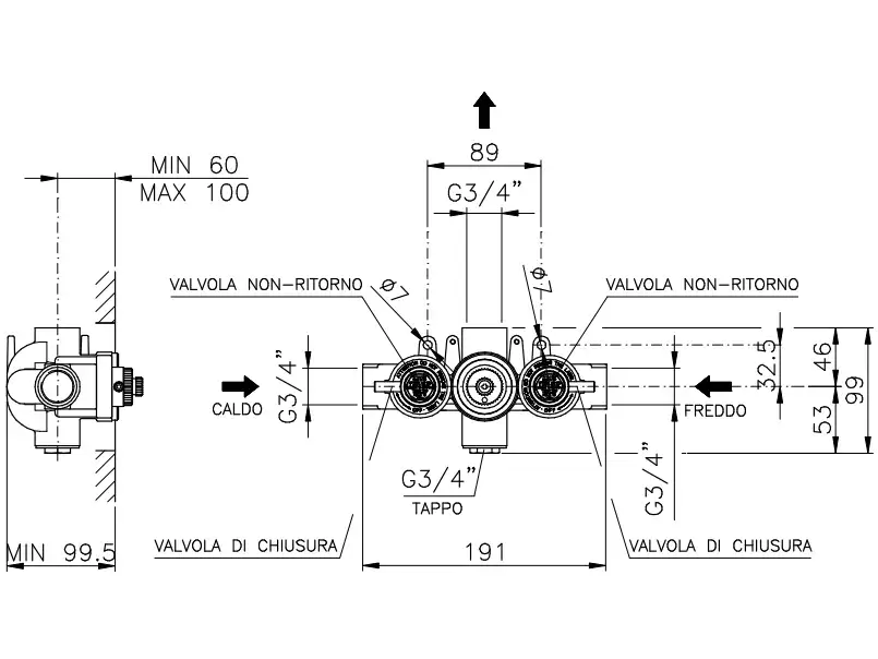 Nicolazzi Termostatico Внешняя часть встр. смесителя, 3/4” с запорным вентилем, цвет хром 4909CR27