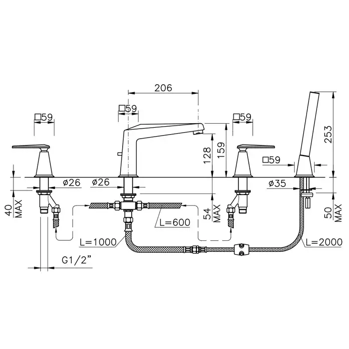 Nicolazzi Vincent Смеситель для ванны с 2мя ручками, цвет хром 1002CR28