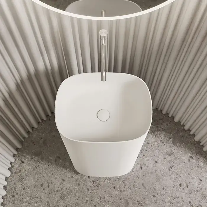 NOORTH milldue edition TUBE Раковина 48х38xh87 напольная из Ceramilux, слив в стену, без отв., без перелива, цвет: белый матовый