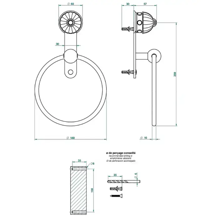 THG Amboise Jaspe rougе Держатель - кольцо 18см., подвесной, цвет: золото