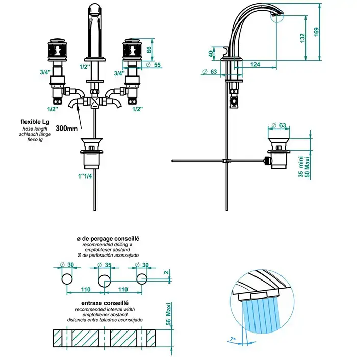 THG Ange Смеситель для раковины, 3 отв., цвет: хром