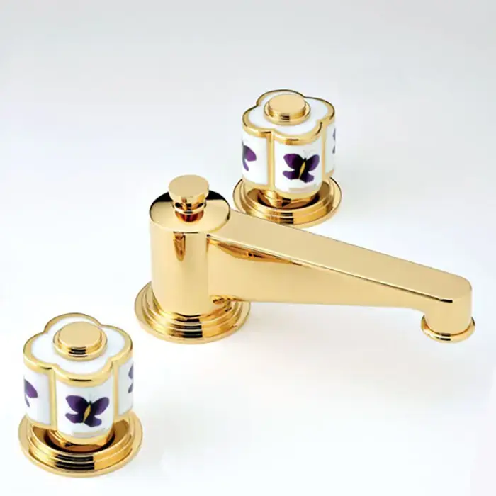 THG CAPUCINE MAUVE DECOR OR Смеситель для раковины на 3 отверстия, с донным клапаном, декор золото/лиловый, цвет: полированное золото