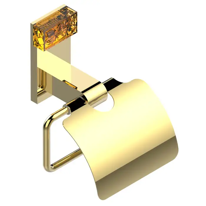 THG Ginkgo Держатель для туалетной бумаги с крышкой, подвесной, цвет: золото/хрусталь