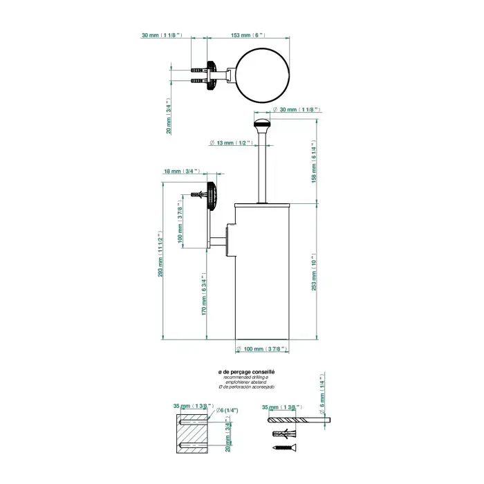 THG Hirondelles Platinum Stamped Ершик подвесной, цвет: хром