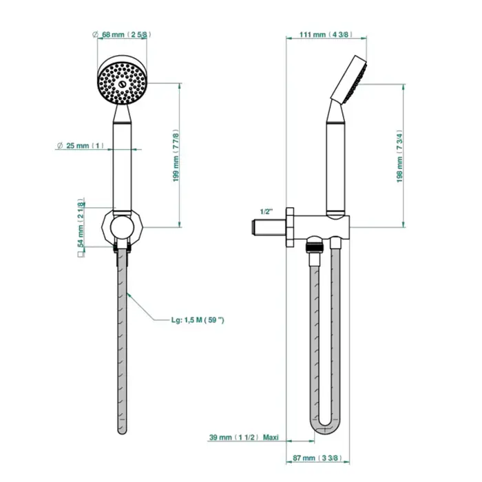 THG Les Ondes Душевой гарнитур: с ручным душем, настенным держателем, подводом воды и шлангом 150см., цвет: Matt nickel