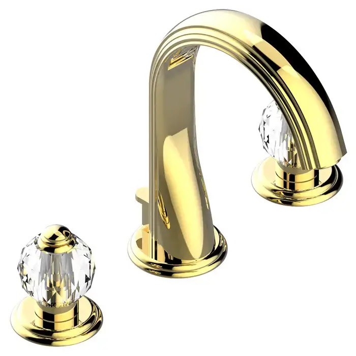 THG Mandarine Cristallia Diamant Смеситель для раковины на 3 отверстия, с донным клапаном, цвет: полированное золото