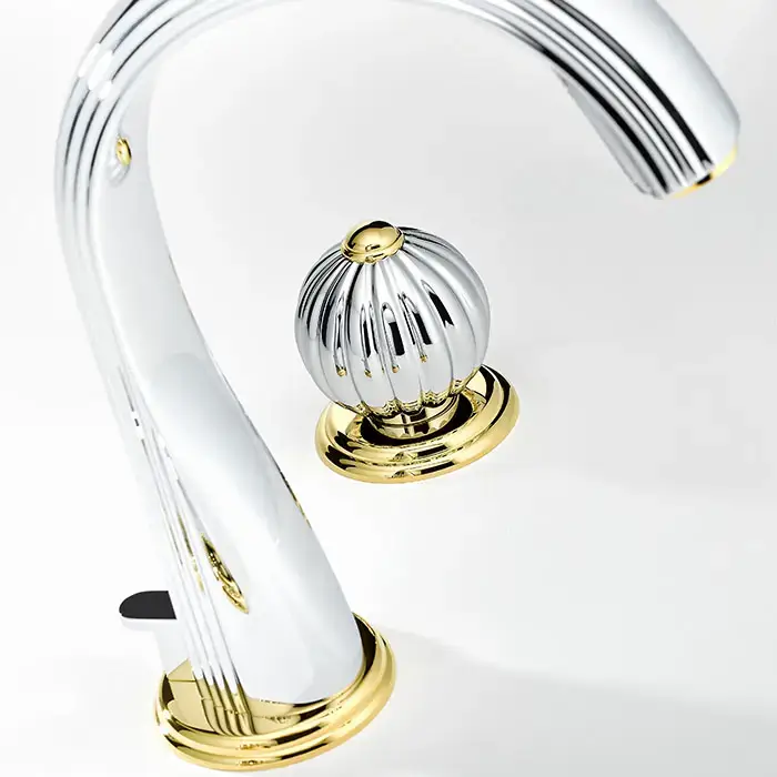 THG Mandarine metal Смеситель для раковины на 3 отверстия, с донным клапаном, цвет: хром/золото