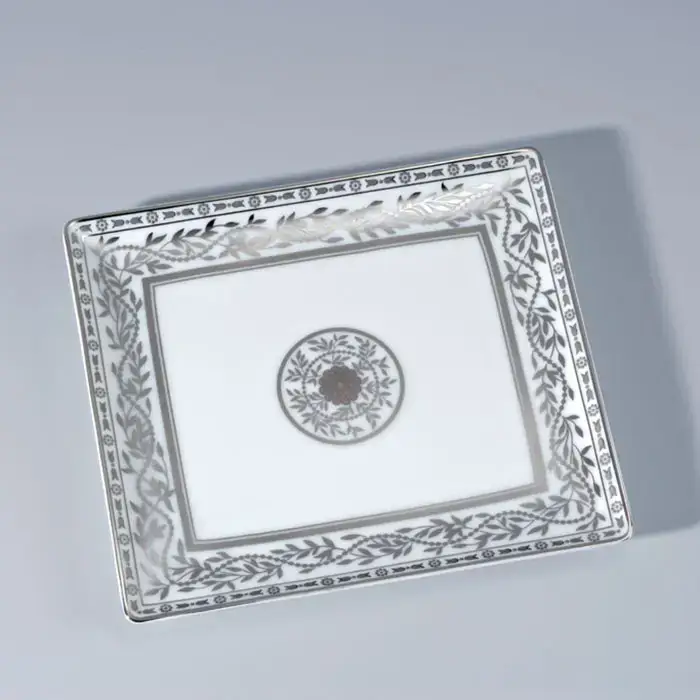 THG MARQUISE BLANC DECOR PLATINE Поднос керамический 122х110 мм., настольный, small size, декор платина, цвет: белый