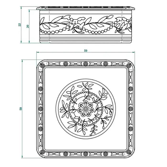 THG MARQUISE NOIR DECOR OR Коробка для таблеток керамическая, квадратная 55х55 мм., настольная, декор черный/золото, цвет: белый