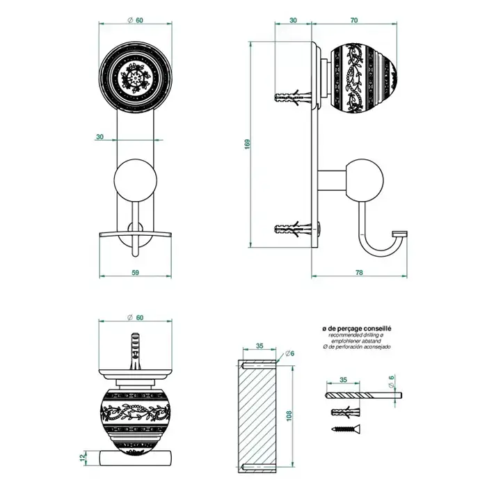 THG Marquise noir décor Or Крючок, декор черный/золото, подвесной, цвет: полированное золото