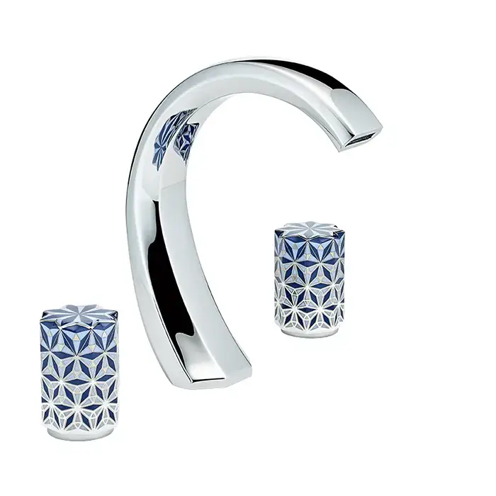 THG NIHAL PORCELAINE BLEUE Смеситель для раковины на 3 отверстия, с донным клапаном, цвет: хром