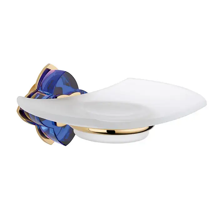 THG Pétale de cristal bleu Мыльница стеклянная, подвесная, цвет: золото/синий хрусталь
