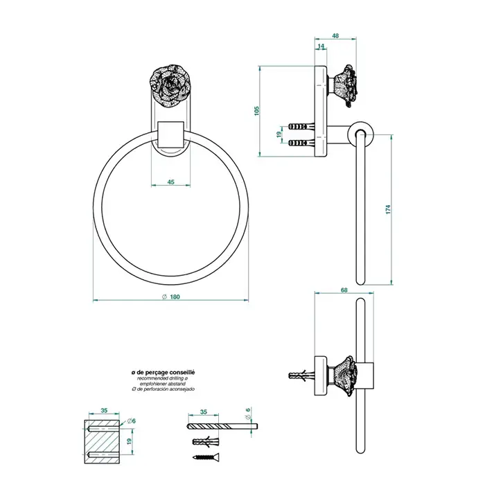 THG Rose Полотенцедержатель - кольцо 18см., подвесной, цвет: золото/розовый