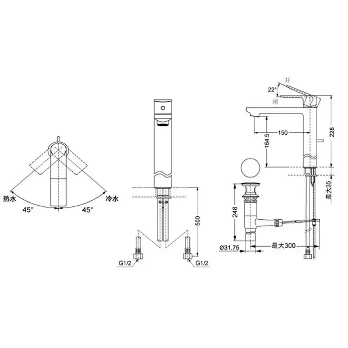 Toto MH Смеситель для раковины высокий, с донным клапаном, цвет: хром DL368-1