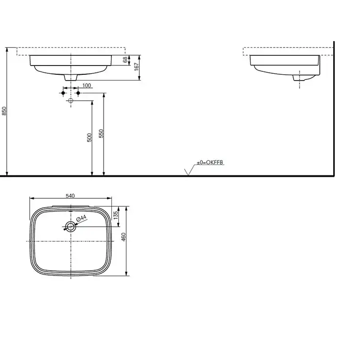 Toto Public Раковина 54x46xh17,2 см, встраиваемая снизу, с переливом, цвет белый LW764Y#XW